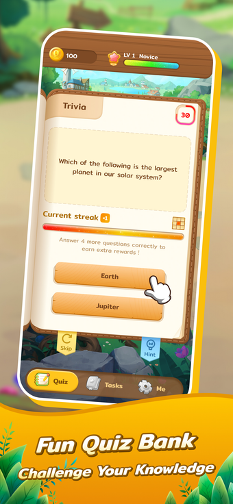 Met de verdiende munten kunnen spelers hints kopen of vragen overslaan. Bij een foutief antwoord kunnen gebruikers munten gebruiken om hun streak te behouden. De app moedigt spelers aan om te levelen door meer munten te verdienen naarmate ze specifieke mijlpalen bereiken. Dankzij de realtime prestatie-tracking kunnen gebruikers hun quizresultaten en voortgang eenvoudig volgen, waardoor ze hun kennis verder kunnen ontwikkelen.